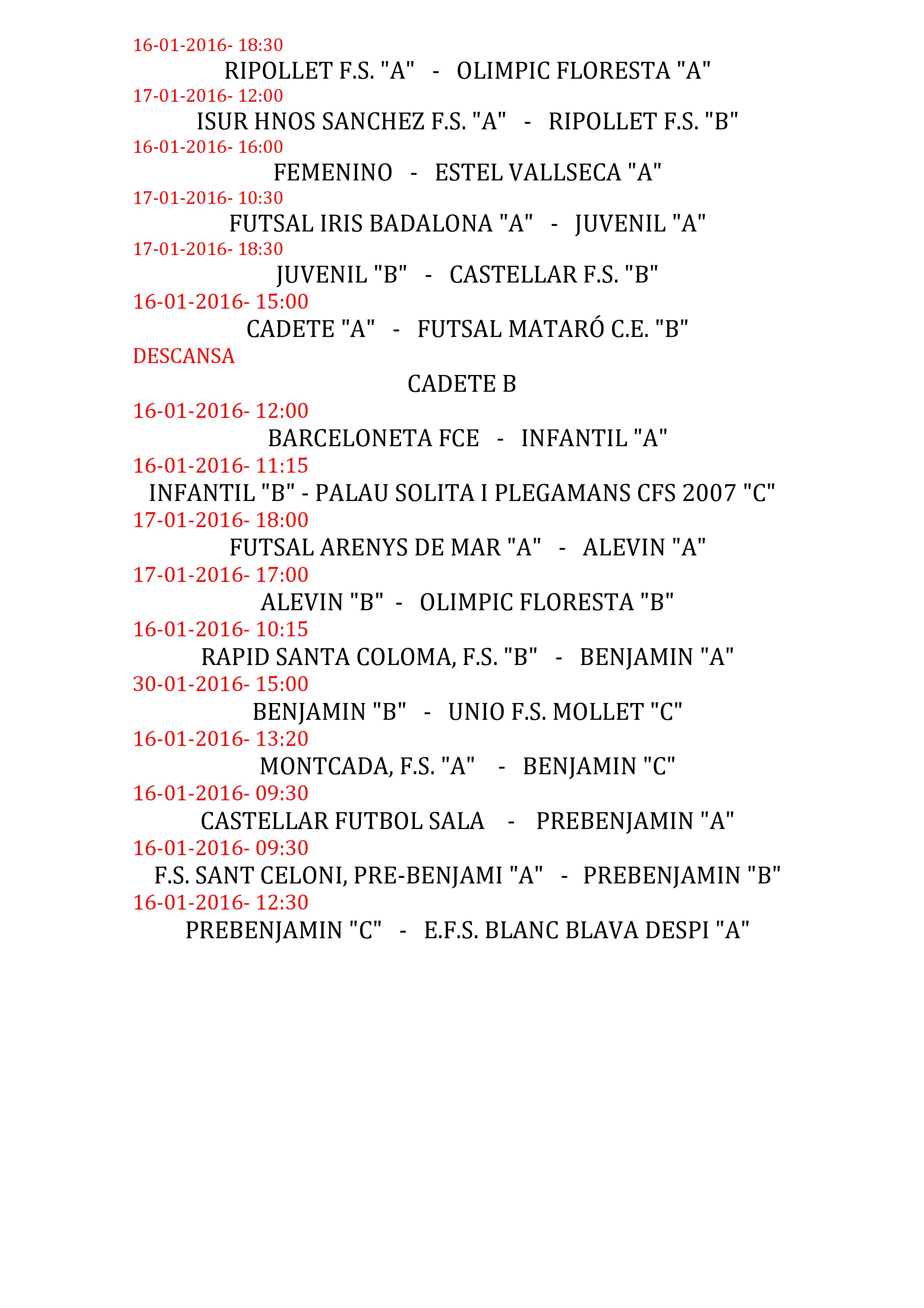 Costosa victoria del FS Ripollet 4-3 contra un muy combativo FS Montcada. Partido muy igualado que no se decidió hasta el ultimo minuto del partido, seria el equipo visitante el que se adelantaría con dos goles en el mismo, los locales lo intentaban pero no conseguían perforar la portería contraria fin, con el resultado de 0-2 se llegaría al descanso. En la reanudación los locales conseguían el primer gol obra de Toni, y acto seguido llegaría el empate a 2 con otro gol de Toni, pero sin tiempo para saborear el gol llegaba el tercer gol de los visitantes. Los locales seguían acechando la portería visitante y fruto de este dominio llegaría el empate con gol de Manel, y cuando todo parecía que el partido acabaría en empate en el ultimo minuto una contra bien dirigida por Jesus por banda derecha y pase al segundo palo donde Pipa solo de marca conseguía el curto gol para los locales. Buen partido por parte de ambos equipos y como cada sábado una gran asistencia de publico que llenaron el Jon Creus con unas 700 personas en las gradas.
