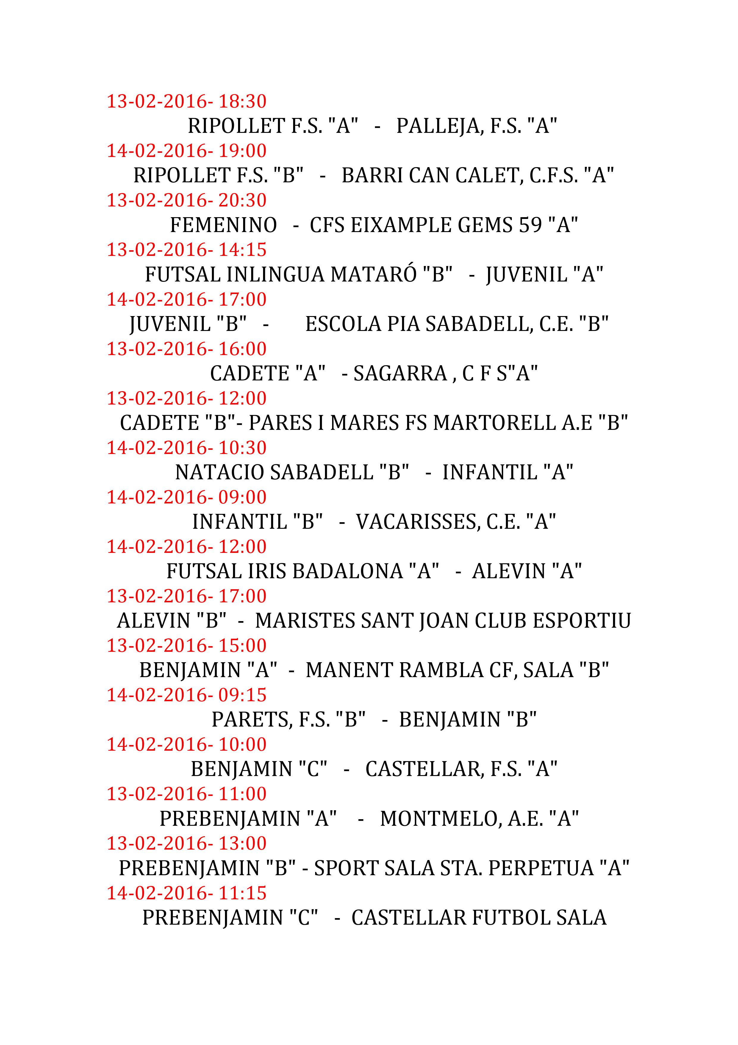 Nueva victoria después de las ultimas dos derrotas que nos sitúa en el noveno puesto de la clasificación. El equipo visitante se desplazo con algunas bajas ya que solo disponían de dos cambios, y los locales con las bajas de Manel y Pipa. Una primera parte que finalizo con empate a cero a pesar de disponer de alguna ocasión de gol. En la reanudación el equipo local se volcó sobre la portería del Palleja y a los 7 minutos Ivan inauguraba el marcador , seguía el equipo local generando ocasiones de gol que una vez el palo y otras la gran actuación del portero visitante evitaban un segundo gol local, pero seria de nuevo Ivan el que pondría el segundo gol en el marcador. El equipo visitante con el marcador en contra sacaría a portero jugador y fruto de ello conseguían su primer gol, pero serian de nuevo los locales quienes conseguirían un nuevo gol obra de Jesus. A las postrimerías del partido llegaría el segundo gol para los visitantes, gol que cerraría el partido con el resultado final de 3-2.